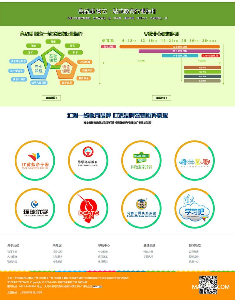 大同和陽學堂——和陽文化教育廣場首開大同市一站式教育服務完整產業鏈,設立文化課程輔導區、藝術特長區、科學手工DIY體驗區、兒童餐飲區、家長綜合提升區。業態范圍涵蓋:親子教育、藝術培訓,餐飲服務、娛樂購物等,將藝術培訓、嬰幼教育、英語培訓、一對一教育、兒童攝影、水上樂園、兒童游樂園、主題餐飲、特色影城等結合為一體,是教育與娛樂完美融合,形成獨特的立體化組合形態,體現多元兒童教育內涵,開啟了中國商業綜合體的新模式和新方向,以差異化和專業化在日益激烈的商業地產競爭中開拓了一條嶄新的發展道路。