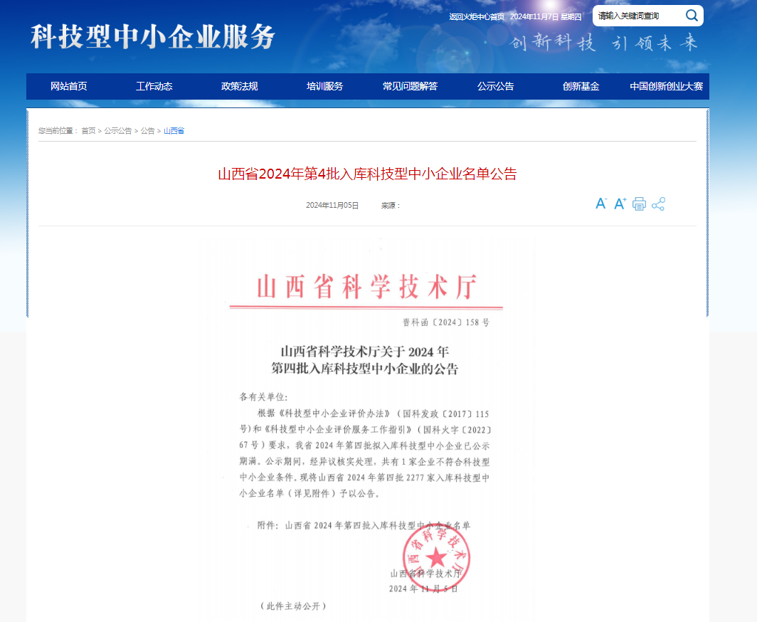 日前,山西省科學技術廳發布《山西省2024年第4批入庫科技型中小企業名單》公告,山西宏微云信息技術有限公司成功入選山西省科技型中小企業。(入庫編號:2024140105A0002727)