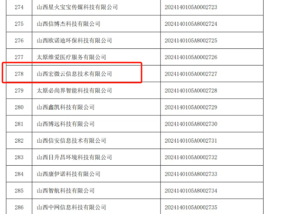 喜報 | 山西宏微云成功入庫“山西省科技型中小企業”